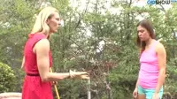 In the scorching summer heat, the scene opens with a stunning blonde MILF, dressed in a skimpy bikini, sunbathing by the pool, her body glistening from the recent rays of sun that caressed her tanned skin.A sultry breeze blows past her, causing her long blonde locks to flutter gently around her face as she gazes towards the horizon, her eyes filled with an untold desire and yearning for adventure and excitement.As she catches sight of a younger brunette with a cheerful disposition, her heart beats faster, her nipples hardening at the mere thought of what could unfold before her lust-driven imagination.The brunette, on her own mission to seek out sensual experiences and liberating encounters, finds herself inadvertently drawn to the captivating blonde MILF sunbathing poolside, her arousal evident through her tight, lace underwear that accentuated her curvaceous figure.Their eyes meet and lock in a passionate embrace, their gazes lingering as if to suggest an unspoken agreement to explore their forbidden desires.As they come face-to-face, the brunette shyly approaches the Blonde MILF, her fingers fumbling with the clasp of her bikini top, a look of excitement and curiosity replacing her previous shyness.The Blonde MILF can't help but feel an alluring aura emanating from this passionate woman who seeks to explore the wildest depths of her own sexuality.Suddenly, their lips lock in a heated kiss, the energy between them almost palpable as they begin to unravel each other's clothing in a frenzy of passion and desire.The Blonde MILF takes control, sliding the eager brunette onto her knees, and positions herself over her face, teasingly close to the brunette's eager lips.As the brunette's tongue snakes out, hungrily seeking out the taste of the blonde woman who she knows would send her to unimaginable heights of ecstasy, a surge of erotic energy fills the air as they begin to explore each other's bodies with fierce intent.The Blonde MILF plays with the brunette's perky breasts and pebbled nipples while simultaneously feasting on her shaved pussy, moans of pleasure intertwining their desire-fueled cries.As they reach their climax in perfect harmony, it is a testament to the allure of forbidden passion that brings them closer together as their bodies shake with pleasure and desire sating every erotic craving within them.Their passionate embrace leaves them breathless, drenched in sweat and unspeakable satisfaction, having discovered new heights of sexual exploration and desire together, bound only by the hot, steamy atmosphere that envelops this scorching summer day's lesbian erotica encounter.